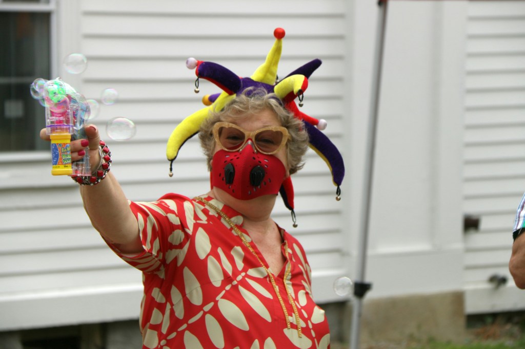 At Office Depot I was wearing my “Read Banned Books” shirt when the cashier commented on their joy of reading and then lamented looking for a book club focused on banned books. I’m in three banned book clubs and invited her to join one of those groups. One day at lunch a server commented on my watchband as they visibly relaxed while serving us our meal. And I always get looks in the grocery store when I’m wearing my clergy collar and Pride hat – my standard Sunday dress for farmer’s market days. This outfit has led to prayers on the street, conversations about churches, or a thank you for showing that all people are of sacred worth.
